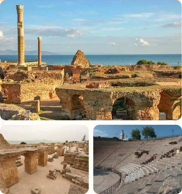 Today, the site comprises a collection of archaeological remains that bear witness to this civilisational richness, including the Punic ports, Roman baths, the theatre, and the ancient residential quarter. Its inclusion on the UNESCO World Heritage list in 1979 attests to its exceptional importance and cultural standing. Carthage is an indispensable destination for anyone wishing to explore the roots of history and to wander amongst the ruins of civilisations that still pulsate with life, all set against a charming natural backdrop overlooking the sea.